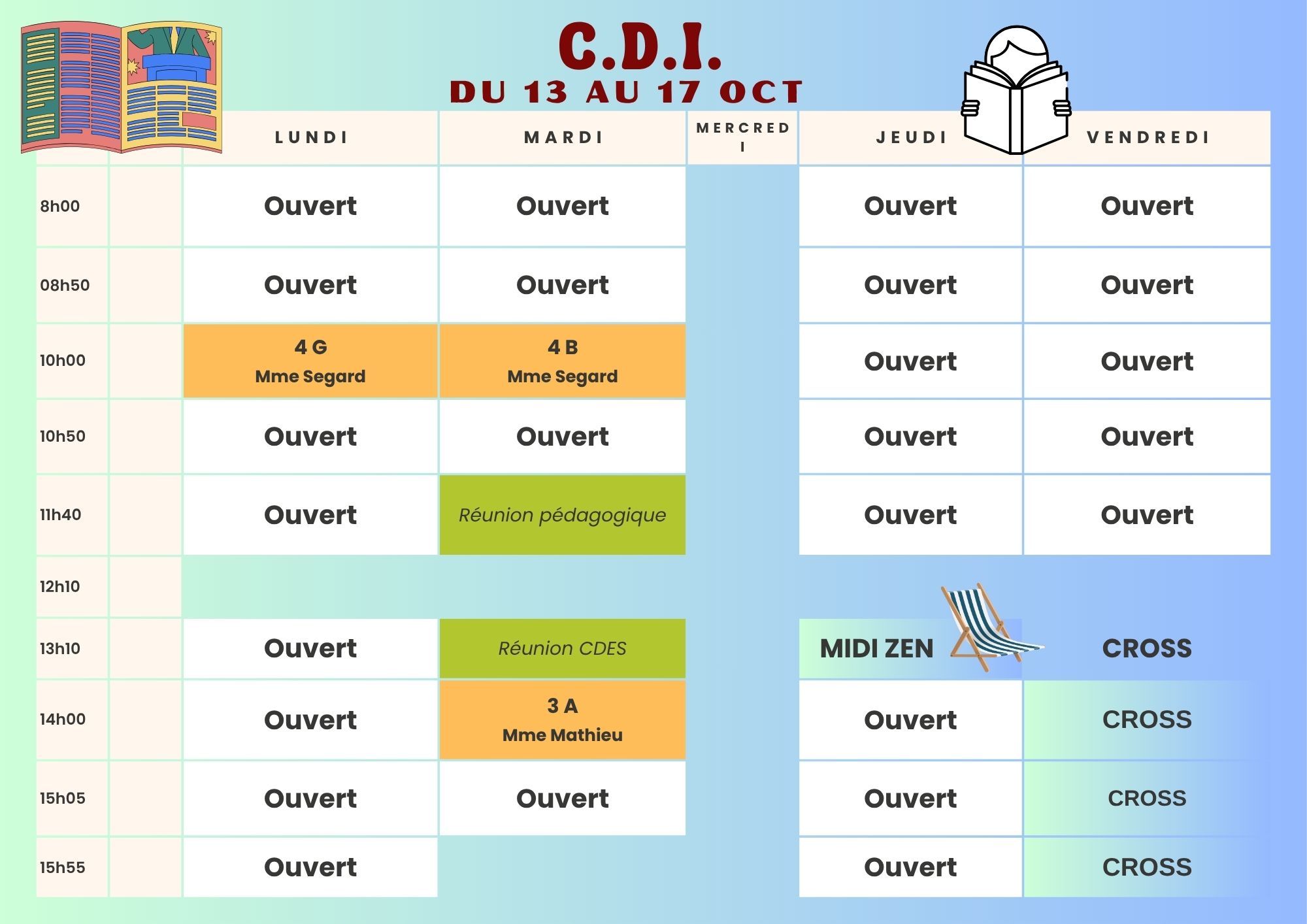 NOUVEAU : le 1/4 d'heure lecture est mis en place et obligatoire pour chaque élève inscrit au CDI.